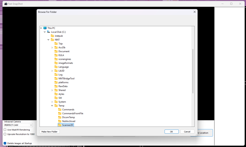 5. Grab the PerfectCam Camera and click the capture button on the camera to launch Fast SnapShot. It will ask you where you want to save pictures, select C:\NTT\Temp\Scanner2D and click OK.